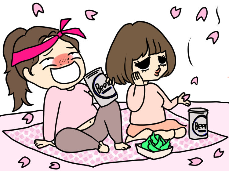 夜桜を肴にお酒をいただく。青空の下もいいですが、